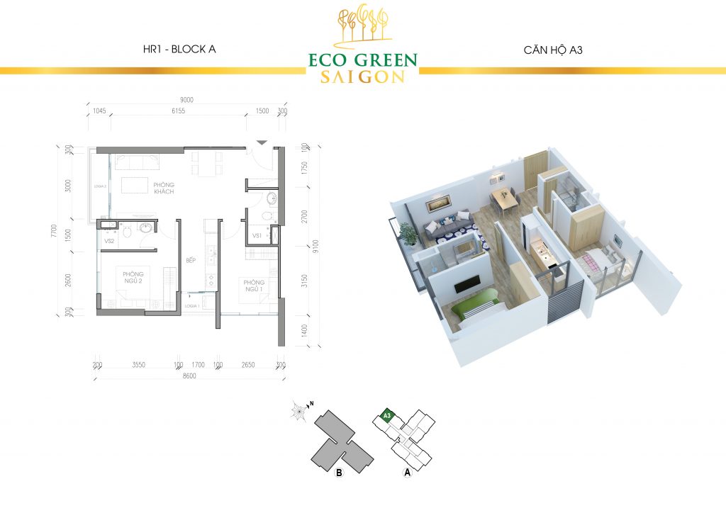 + Diện tích 52m2, 2PN – 1WC từ 3-3.35tỷ/căn.